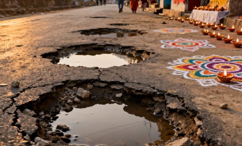 उत्तराखंड राजधानी में दीपावली से पहले भी सड़कों पर गड्ढे, सरकारी दावों की खुल रही पोल