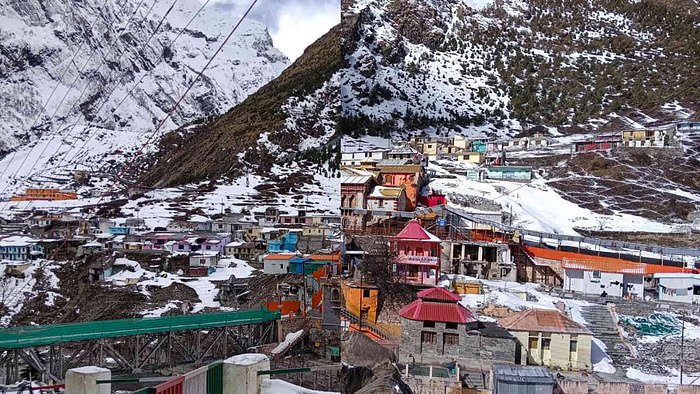 ताजी बर्फबारी से लदा बद्रीनाथ धाम