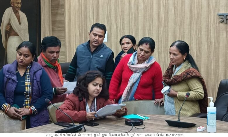 देहरादून : मुख्य विकास अधिकारी झरना कमठान की अध्यक्षता में ऋषिपर्णा सभागार कलेक्ट्रेट में जनसुनवाई का अयोजन किया गया। जनसुनवाई में आज 112 शिकायतें प्राप्त हुई, जिनमें अधिकतर प्रकरण भूमि विवाद सम्बंधी प्राप्त हुए, इसके अतिरिक्त अवैध निर्माण, अतिक्रमण, आपसी विवाद, धनराशि वापस दिलाने, चैक बांउस एवं सिंचाई, शिक्षा, पंचायतीराज, जल संस्थान, लोनिवि, नगर निगम, पीएमजीसीआई, पूर्ति विभाग, एनएचएआई भूमि मुआवज़ा, वन, एमडीडीए आदि विभागों से समबन्धित प्राप्त हुई, जिनके समयबद्ध निस्तारण के निर्देश सम्बन्धित विभागों के अधिकारियों को दि गए।