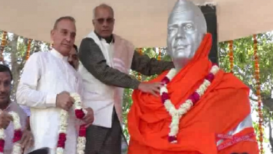 पूर्व PM चरण सिंह कि मूर्ति पर शरारती तत्वों ने लपेटा BJP का झंडा