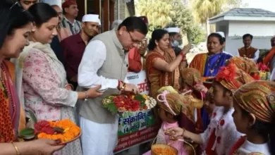 धामी ने मुख्यमंत्री आवास में बच्चों के साथ मनाया फूलदेई पर्व