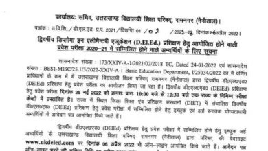 उत्तराखंड विद्यालय शिक्षा परिषद रामनगर ने डीएलएड के फार्म आमंत्रित किए हैं डीएलएड करने वालों को ऑनलाइन आवेदन करना होगा…