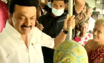 बस में सवार हुए मुख्यमंत्री स्टालिन
