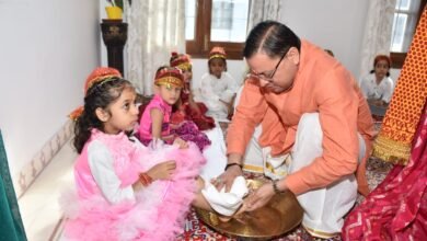 मुख्यमंत्री पुष्कर सिंह धामी ने नवमी के पावन अवसर पर विधि विधान से कन्या पूजन किया।