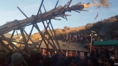 उत्तरकाशी जिले के रवांई क्षेत्र के बनाल ठकराल पट्टी के प्रसिद्ध पौराणिक देवलांग मेले में देवदार के पेड़ के आगे…