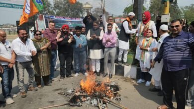 Effigies of Congress MLAs burnt at Lansdowne Chowk with sloganeering भारतीय जनता पार्टी महानगर अल्प संख्यक मोर्चा के अध्यक्ष यासमीन…