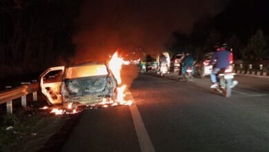 A car engulfed in flames on the Haridwar-Dehradun road became a ball of fire. ऋषिकेश/रिपोर्ट……महेश पंवार: हरिद्वार देहरादून राजमार्ग पर…