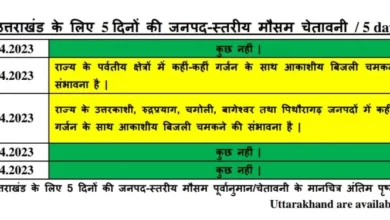 अपडेट: अगले 5 दिन के लिए मौसम का पूर्वानुमान जारी, देखिए.. देहरादून– मौसम विभाग ने राज्य में अगले 5 दिनों…