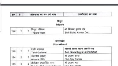देहरादून : बीजेपी की लोकसभा उम्मीदवारों को पहली सूची जारी।। अल्मोड़ा से अजय टम्टा को दुबारा मिला मौका।। नैनीताल से…