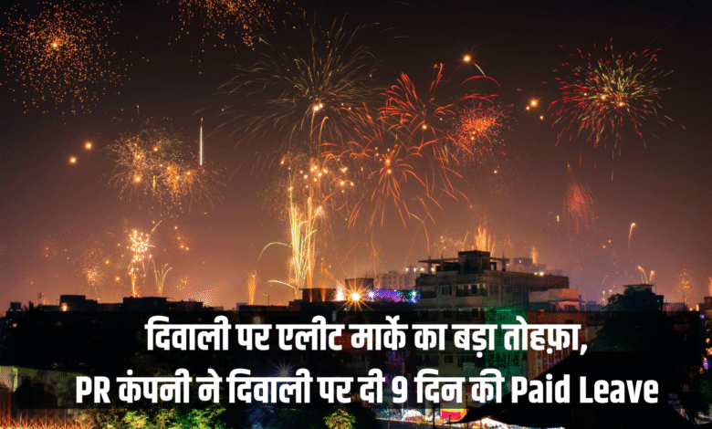 Elite Marke PR company : कॉर्पोरेट दुनिया में जहां बोनस या दो दिन की छुट्टी को ही त्योहार का तोहफ़ा माना जाता है, वहीं दिल्ली की एक जनसंपर्क कंपनी ने कुछ ऐसा किया है, जो आज देश भर में चर्चा का विषय बन गया है। दिवाली के मौके पर ‘एलीट मार्के’ नाम की इस PR कंपनी ने अपने कर्मचारियों को पूरे 9 दिन की पैड लीव देने का ऐलान किया है। एलीट मार्के के सीईओ के मुताबिक कंपनी ने ये फैसला इसलिए लिया है ताकि कंपनी से जुड़े लोग त्योहारों का पूरा मजा उठा सकें।
