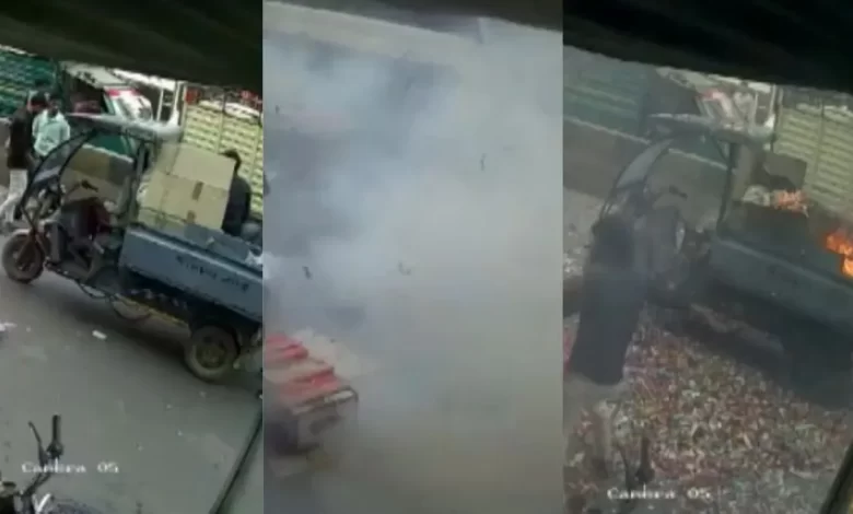 जानकारी के मुताबिक ई- रिक्शा में आतिशबाजी का सम्मान रखा हुआ था जिस पर पटाके रखे हुए थे ,अचानक ई -रिक्शा में धमाका हो गया जिससे सड़क पर चलते लोग इधर उधर दौड़ने लगे ,इधर उधर दौडते लोगों में हाहाकार मच गया और वह चीख पुकार करने लगे,धमाके के बाद स्थानीय लोग ई-रिक्शा में लगी आग पर काबू पाने की कोशिश करने लगे ।