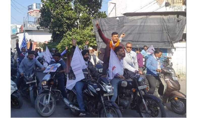 आम आदमी पार्टी ने रोजगार गारंटी जागरूकता को लेकर रविवार को बाइक रैली निकाली। आप प्रवक्ता रविंद्र आनंद की अगुवाई में कार्यकर्ताओं ने रैली के माध्यम से लोगों को पार्टी की रोजगार गारंटी वादों के प्रति जागरूक किया।