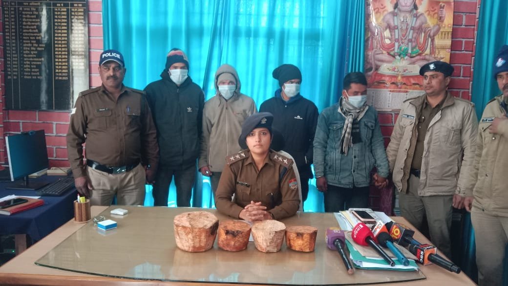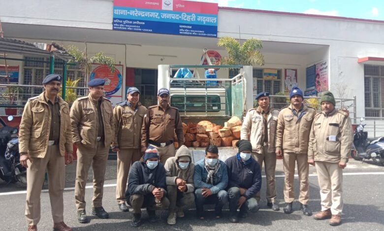 आपको बता दें कि गाड़ी से 101 गुटके प्रतिबंधित लकड़ी के बरामद हुए। क्योंकि अपराध वन्य उपज से संबंधित है अतः वास्ते अग्रिम कार्यवाही हेतु वन विभाग नरेंद्र नगर के अधिकारी गणों को द्वारा फोन सूचित किया गया. चारों अभियुक्तगणों को मय वाहन व बरामद माल के नियमानुसार वन विभाग की टीम के सुपुर्द किया गया ।