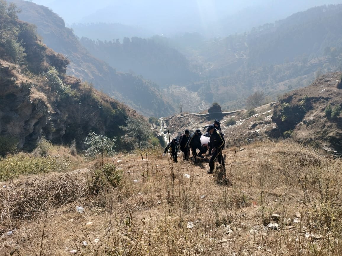 SDRF टीम द्वारा घटनास्थल पर पहुँचकर खाई में उतरकर उक्त व्यक्ति के शव तक पहुँच बनायी व स्ट्रेचर के माध्यम से शव को खाई से वेकल्पिक मार्ग से मुख्य मार्ग तक लाकर जिला पुलिस के सुपुर्द किया गया।
