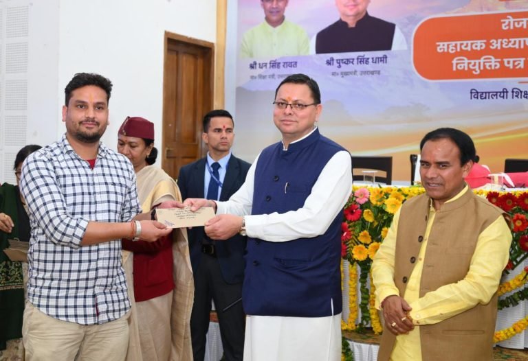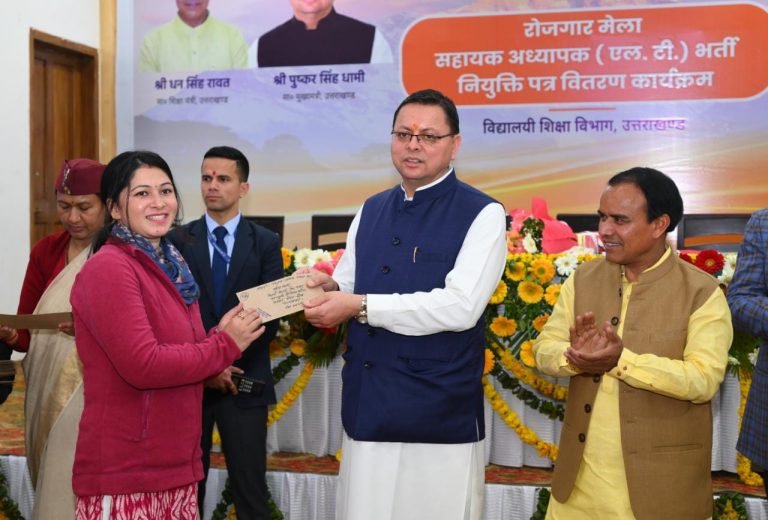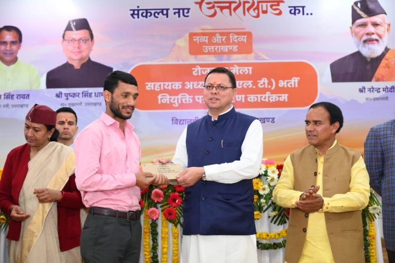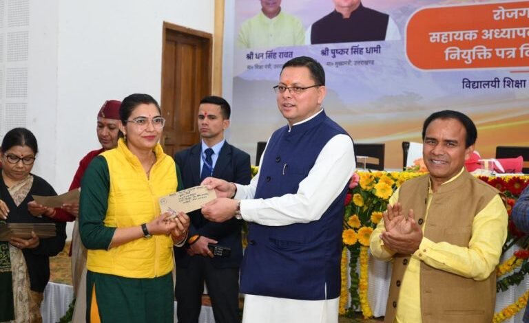 मुख्यमंत्री पुष्कर सिंह धामी एवं शिक्षा मंत्री डॉ. धन सिंह रावत द्वारा मुख्यमंत्री आवास स्थित मुख्य सेवक सदन में 05 विषयों के चयनित सहायक अध्यापकों (एलटी) को नियुक्ति पत्र प्रदान किये। शिक्षा विभाग के अन्तर्गत 1431 सहायक अध्यापकों को नियुक्ति पत्र प्रदान किये जा रहे हैं। मुख्य सेवक सदन में 150 सहायक अध्यापकों को आज नियुक्ति पत्र प्रदान किये गये।