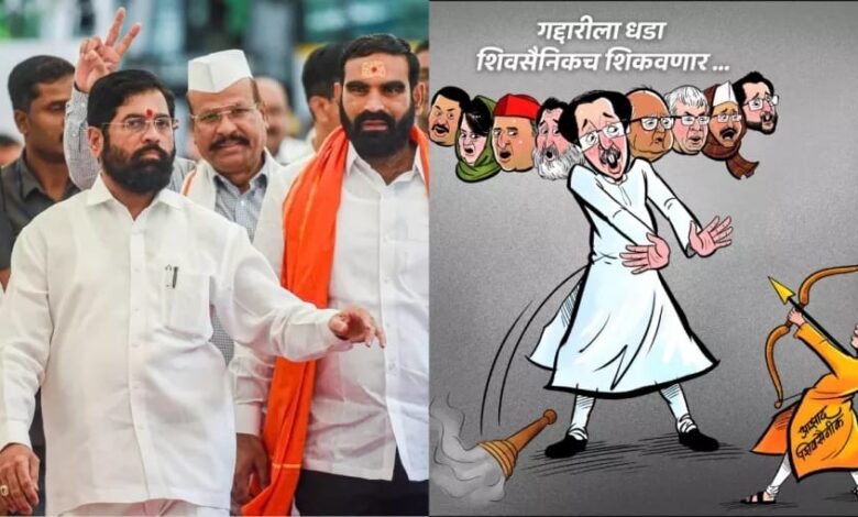 मंगलवार के दिन जहाँ पूरा देश दशहरा का उत्सव मना रहा है। वही इस दशहरा उत्सव में लोगों की नजर महाराष्ट्र की राजनीति पर भी टिकी होगी। एकनाथ शिंदे की शिवसेना और उद्धव ठाकरे की शिवसेना यूबीटी दोनों ही आज अलग-अलग स्थानों पर दशहरा रैली का आयोजन करेंगे। इस रैली के माध्यम से दोनों ही गुट अपना-अपना शक्ति प्रदर्शन करने वाले हैं। हालांकि, रैली से पहले ही शिंदे गुट ने एक ऐसा पोस्टर शेयर किया है जिससे विपक्षी दल के नेता नाराज हो सकते हैं।