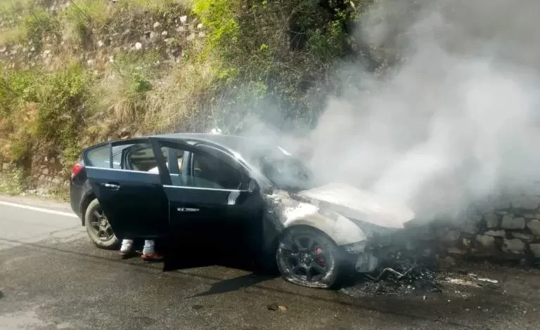 नैनीताल:- उत्तराखंड के नैनीताल से अभी-अभी बड़ी खबर सामने आ रही है कि यहां एक कार हल्द्वानी से भवाली की ओर जा रही थी। जिसमें आमडाली भीमताल के पास अचानक आग लग गई जिसमें 4 लोग सवार थे । घटना की जानकारी मिलते ही मौके पर पहुंची भीमताल पुलिस एवं फायर यूनिट ने पानी डालकर आज बुझाया फिलहाल कार सवार दो पुरुष 2 महिला आग लगते ही कार से बाहर निकल गए थे।