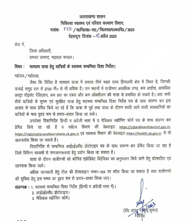 चारधाम यात्रा 2023 हेतु यात्रियों के स्वास्थ्य हेतु दिशा निर्देश