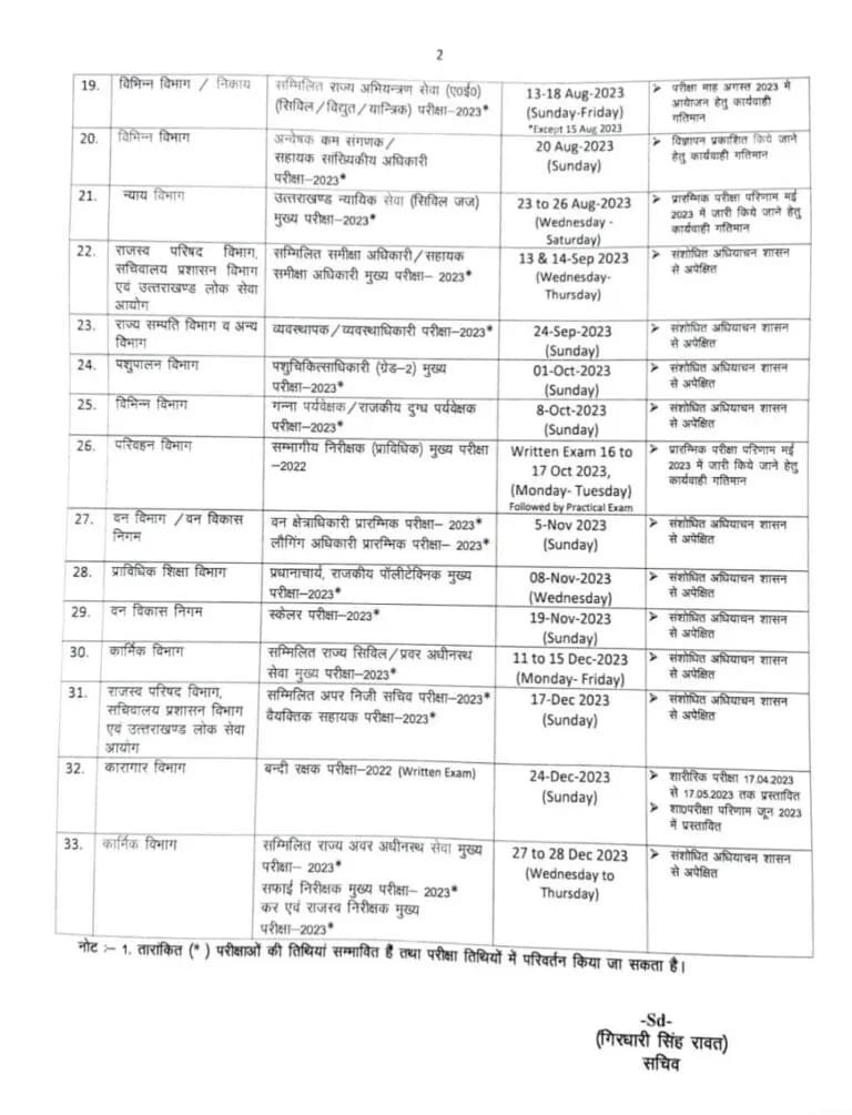 उत्तराखंड लोक सेवा आयोग ने 32 भर्तियों का संशोधित कैलेंडर जारी कर दिया है, जिनमें से नौ भर्तियां कराई जा चुकी हैं। नए कैलेंडर में आयोग ने पेपर लीक की वजह से रद्द हुई एई भर्ती परीक्षा को भी शामिल किया है, जो कि 13 से 18 अगस्त के बीच होगी।