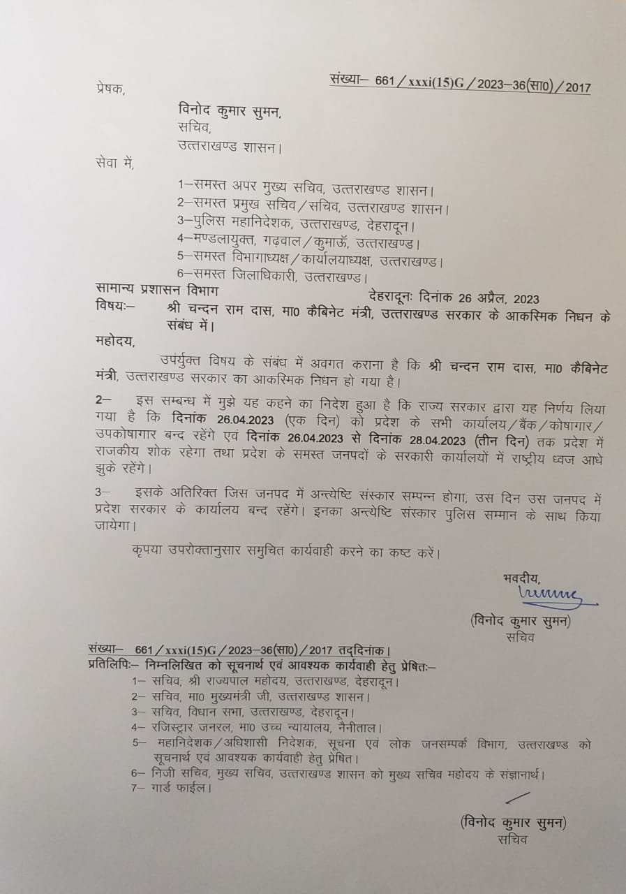 देहरादून: कैबिनेट मंत्री चंदन राम दास के निधन की खबर।