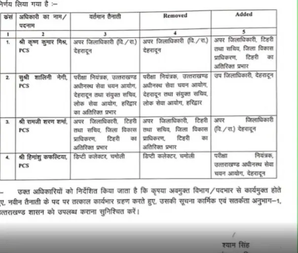 Big news: 4 PCS officers transferred in Uttarakhand