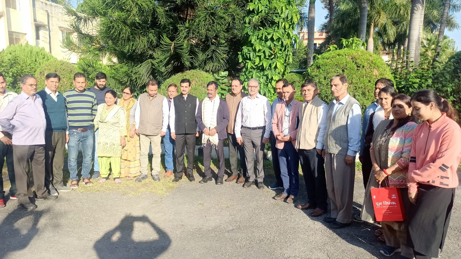 आज दोपहर बाद रेशम निदेशालय उत्तराखण्ड, प्रेमनगर-देहरादून के मुख्यालय में निदेशक रेशम प्रदीप कुमार द्वारा उनको औपचारिक स्वागत किया गया एवं रेशम निदेशालय की वर्तमान गतिविधियों, संचालित योजनाओं एवं प्रगति से सदस्य सचिव , केन्द्रीय रेषम बोर्ड, भारत सरकार को अवगत कराया गया जिसमें विभागीय अधिकारियों के अतिरिक्त केन्द्रीय रेशम बोर्ड, नई दिल्ली, के अधिकारी, देहरादून में अवस्थित केन्द्रीय रेशम बोर्ड के अधिकारी भी सम्मिलित थेे।