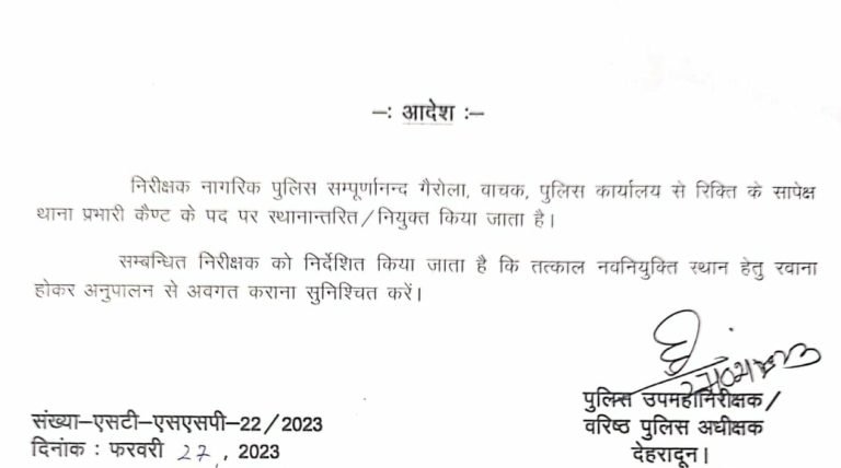 बड़ी खबर देहरादून: अवैध खनन की शिकायत पर बदला गया थाना इंचार्ज