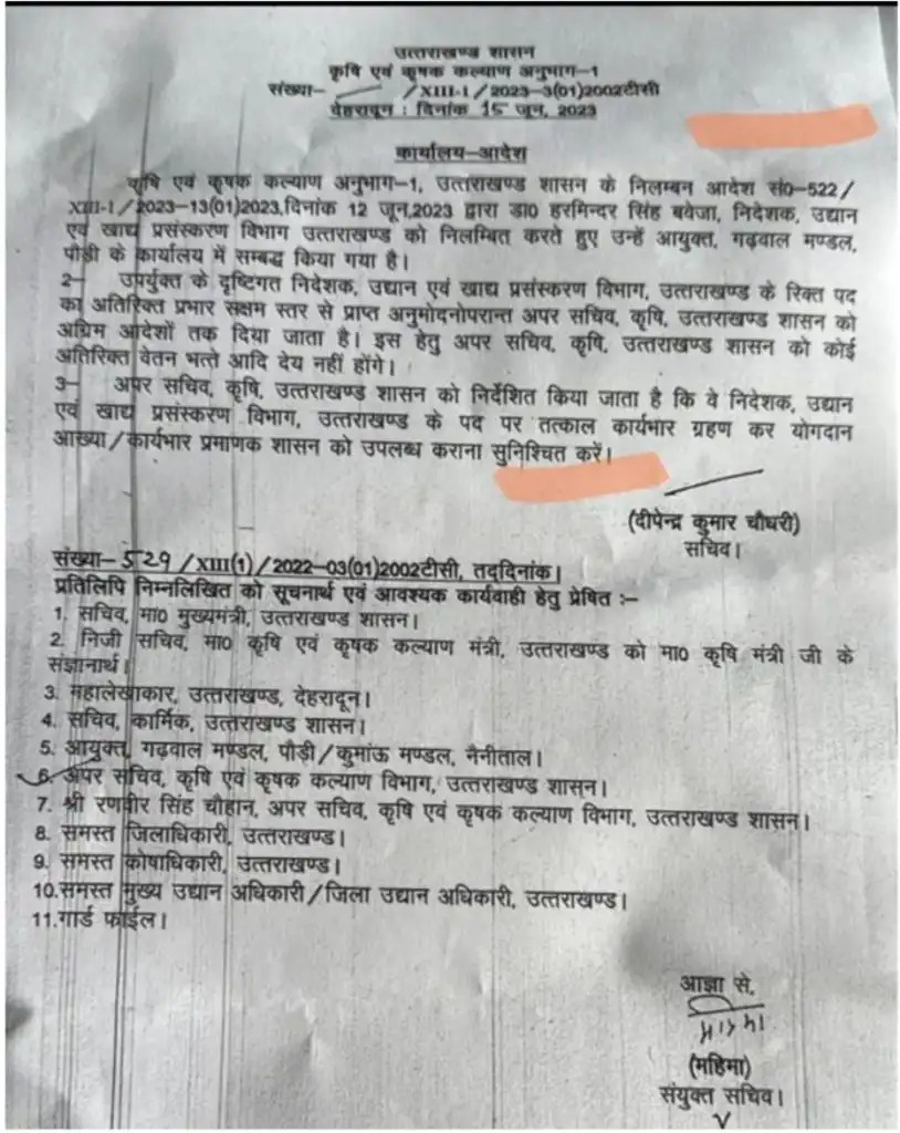 देहरादून : भ्रष्टाचार के आरोपों में हटाए गए उद्यान विभाग के निदेशक रहे बवेजा के स्थान पर उद्यान विभाग की जिम्मेदारी अब आईएएस रणवीर चौहान को दी गई है। वे वर्तमान में कृषि विभाग के अपर सचिव भी हैं।