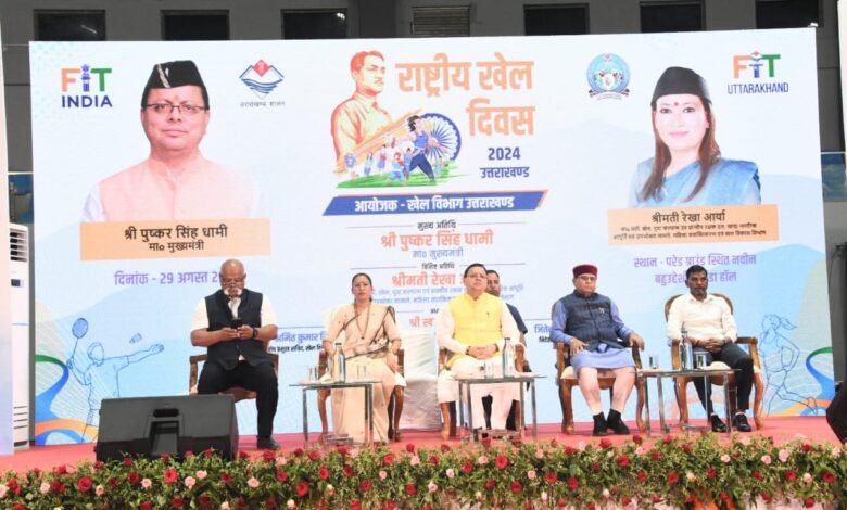 देहरादून, 29 अगस्त 2024 : आज राष्ट्रीय खेल दिवस के अवसर पर, देहरादून के परेड ग्राउंड स्थित नवीन बहुउद्देशीय क्रीड़ा हॉल में मुख्य कार्यक्रम आयोजन किया गया। इस कार्यक्रम में राज्य के मुख्यमंत्री पुष्कर धामी और खेल मंत्री रेखा आर्या ने, खेलों में योगदान देने वाले हर व्यक्ति का आभार प्रकट किया और खिलाड़ियों को सम्मानित कर उनका उत्साह बढ़ाया।