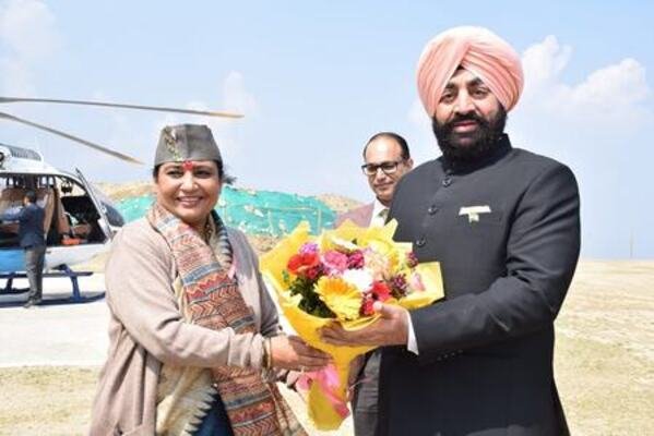 Big news: Governor reached Bharadisain, welcomed by Speaker Ritu Khanduri on helipad
