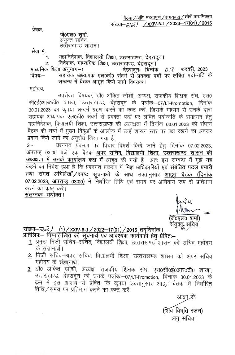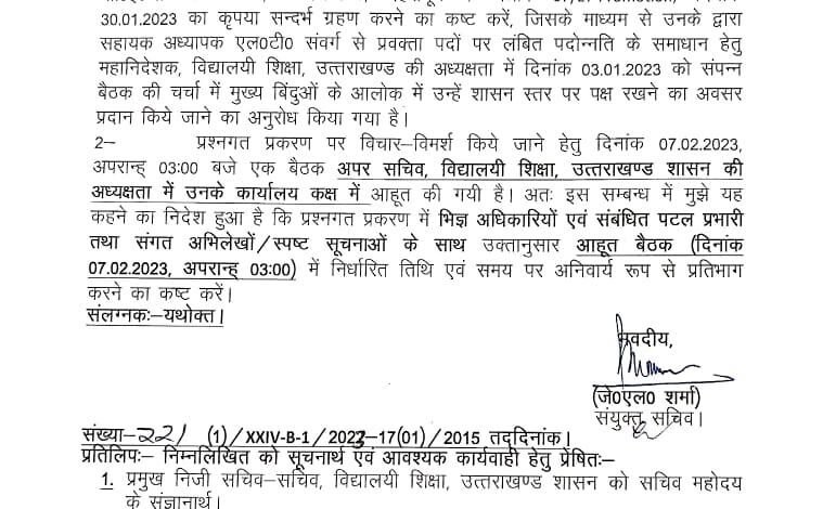 Big News: Meeting called regarding pending promotion from assistant teacher LT cadre to spokesperson posts Big News: सहायक अध्यापक एलटी संवर्ग से प्रवक्ता पदों पर लंबित पदोन्नति के संबंध में बैठक आहूत