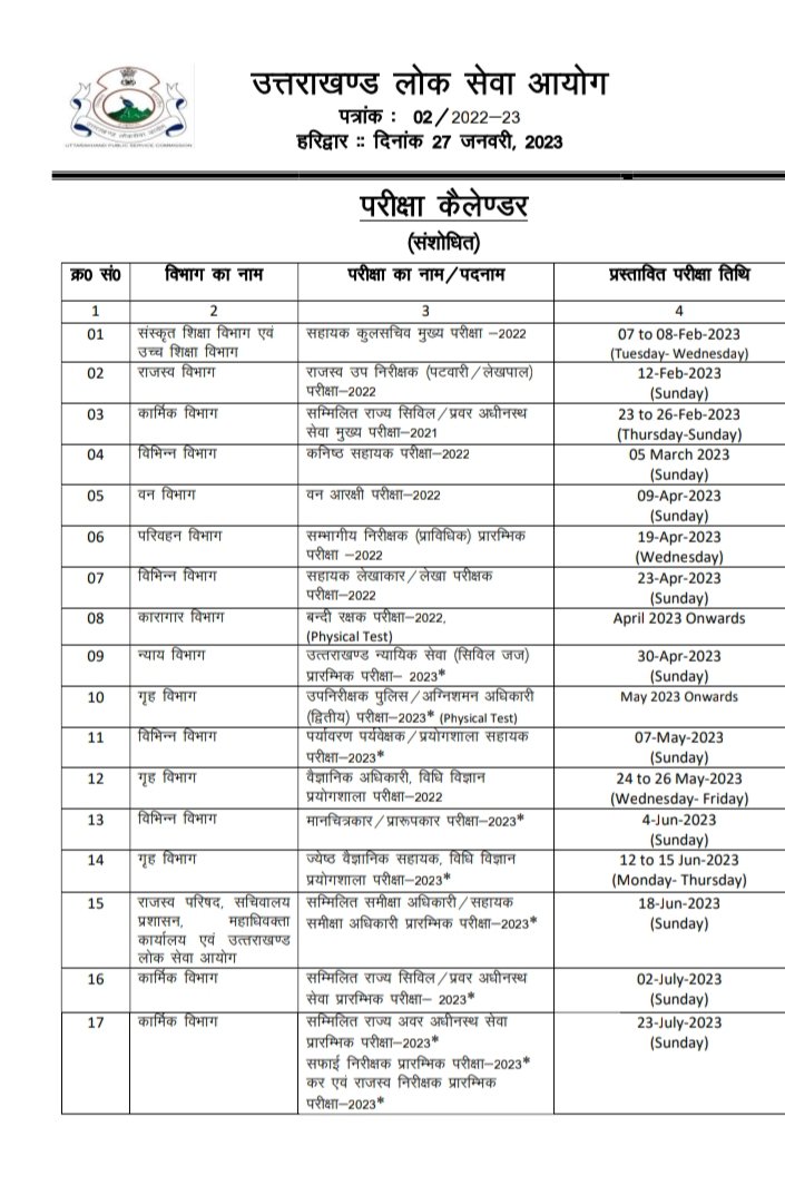 Big news: Uttarakhand Public Service Commission released the exam calendar of 32 recruitments उत्तराखंड लोक सेवा आयोग ने 32 भर्तियों का परीक्षा कैलेंडर जारी किया है। उत्तराखंड में राष्ट्रपति मैडल का एलान! इन्हें मिलेगा मैडल