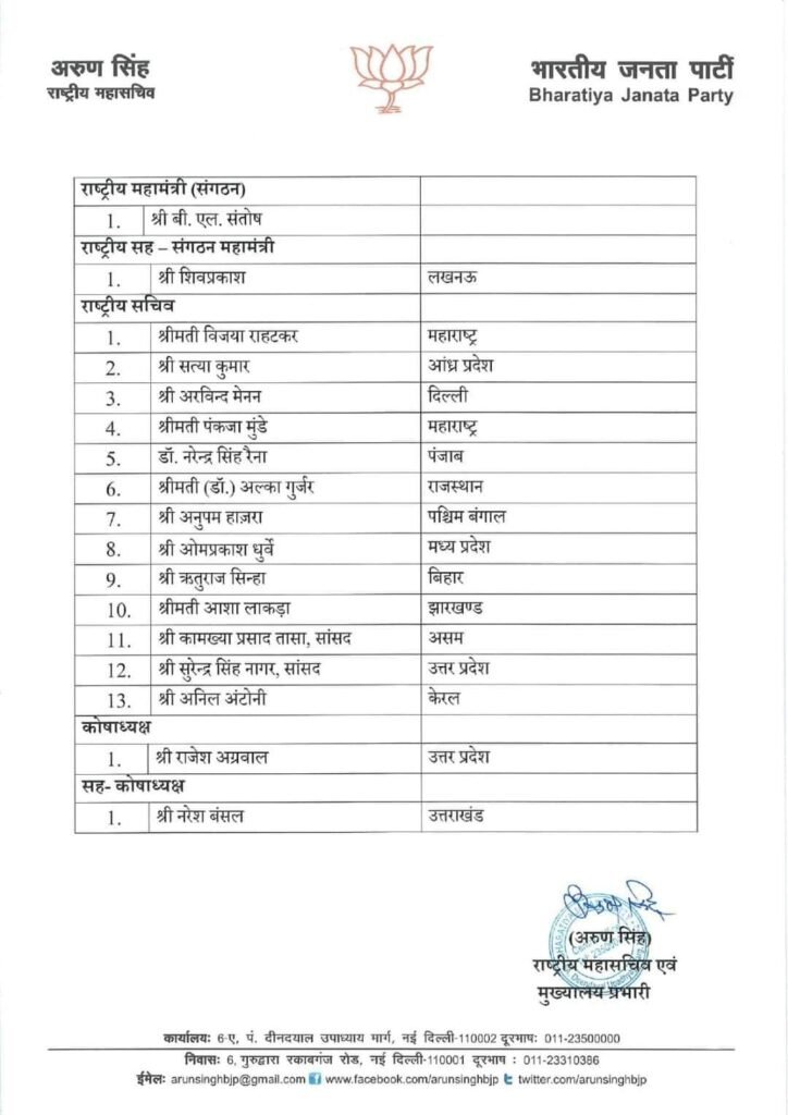 BJP ने घोषित की नई केंद्रीय टीम! उत्तराखंड में सांसद नरेश बंसल को मिली जगह