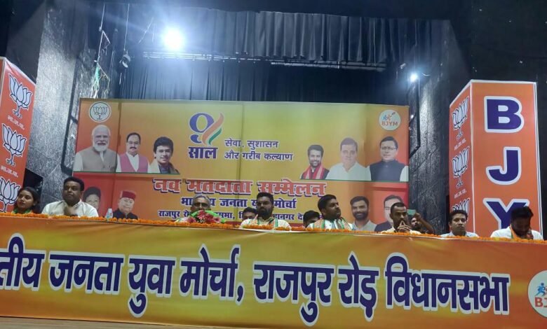 आज भारतीय जनता पार्टी युवा मोर्चा राजपुर रोड़ विधानसभा द्वारा महा जनसंपर्क अभियान के तहत नव मतदाता सम्मेलन टाउन हॉल सभागार में आयोजित किया गया
