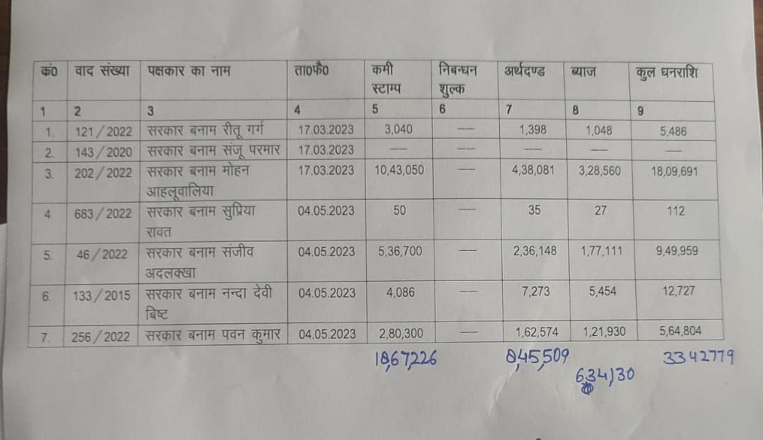 देहरादून : गत दिवस जिलाधिकारी सोनिका द्वारा स्टांप चोरी मामलों पर जांच कर कार्रवाई के निर्देश दिए गए हैं। जिलाधिकारी के निर्देशों के क्रम में जांच करने पर लगभग धनराशि रुपए 1867226 की स्टांप चोरी पाई गई।