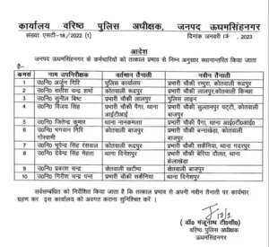 इस संबंध में ऊधमसिंह नगर वरिष्ठ पुलिस अधीक्षक डॉ० मंजूनाथ टी०सी० ने स्थानांतरण आदेश जारी किया है।
