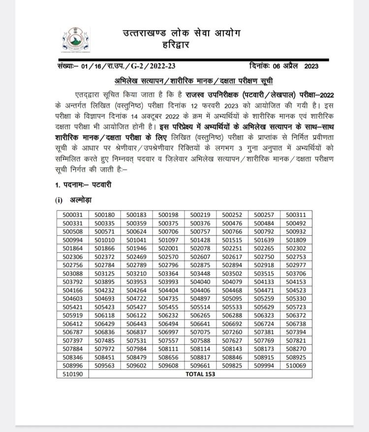 Breaking: UKPSC released Patwari/Lekhpal exam result, see list here उत्तराखंड लोक सेवा आयोग ने पटवारी लेखपाल परीक्षा का रिजल्ट जारी कर दिया है। नीचे देखें पूरा रिजल्ट....
