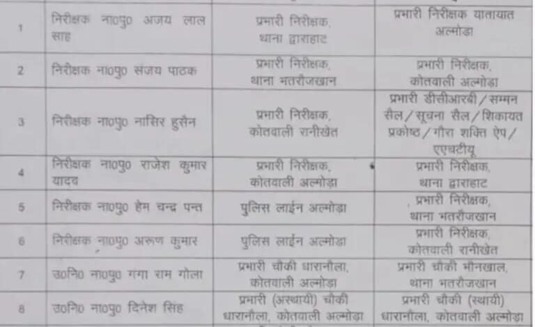 ब्रेकिंग (उत्तराखंड) इस जनपद में निरीक्षक और उप निरीक्षकों के हुए स्थानांतरण