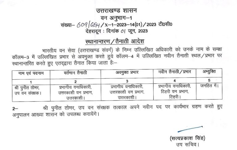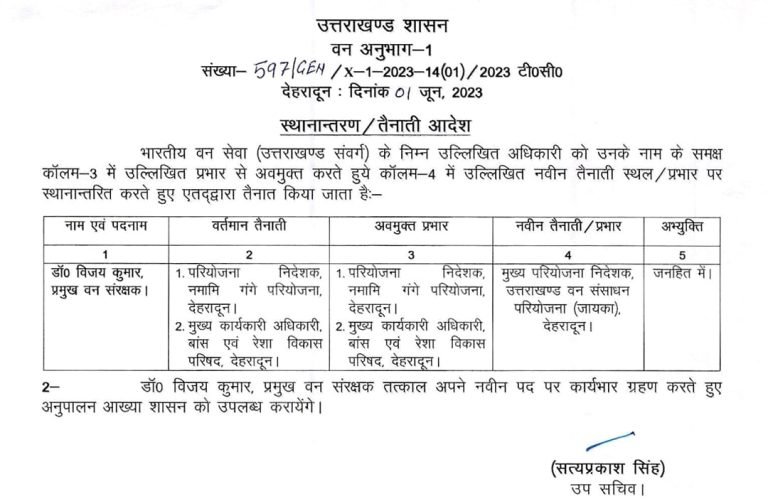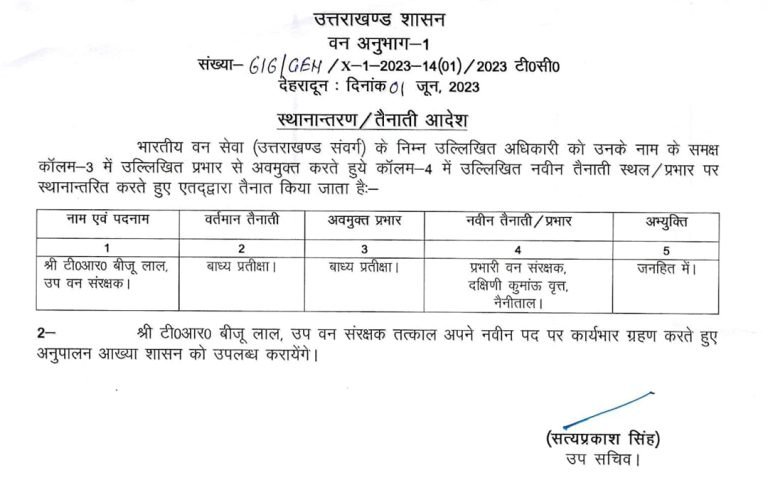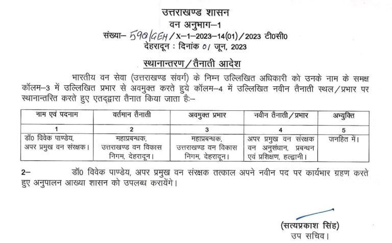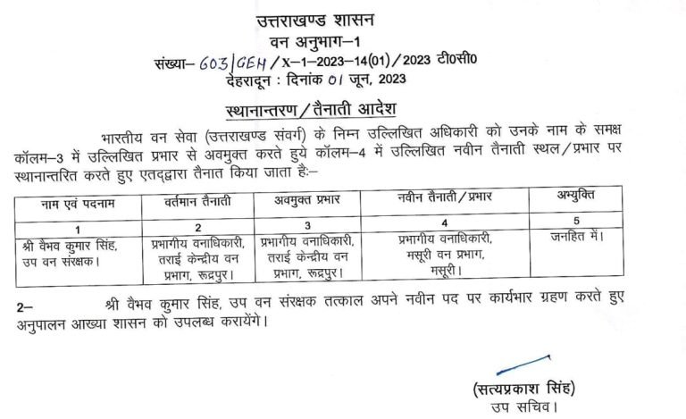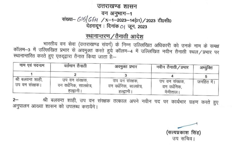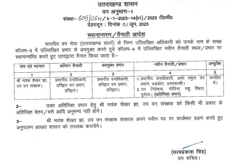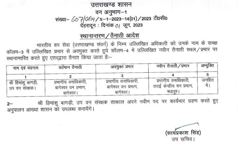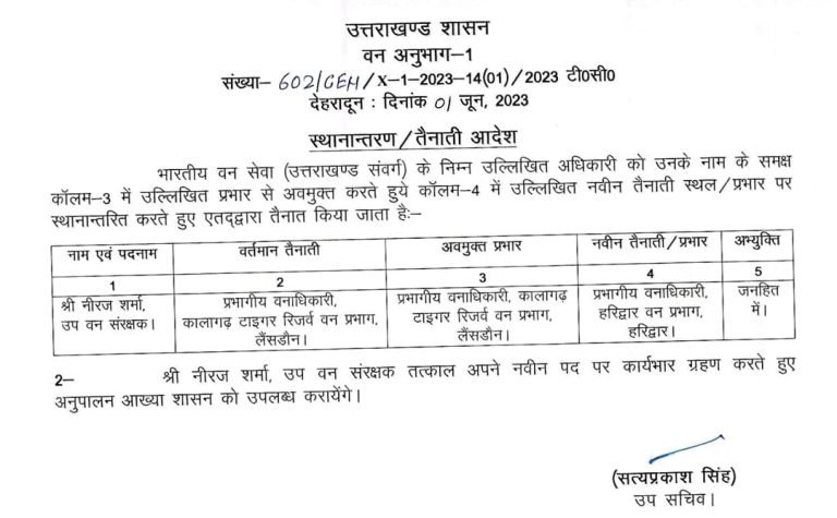 उत्तराखंड ब्रेकिंग : उत्तराखंड वन विभाग में बंपर तबादले, जानिए किस को कहां भेजा, यहां देखें पूरी लिस्ट उत्तराखंड वन विभाग में बंपर तबादले किए गए हैं, इस संबंध में प्रमुख सचिव आरके सुधांशु ने आदेश जारी किया है। देखें सूची :-