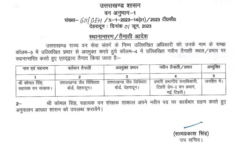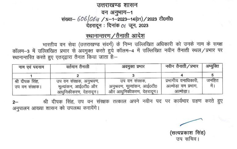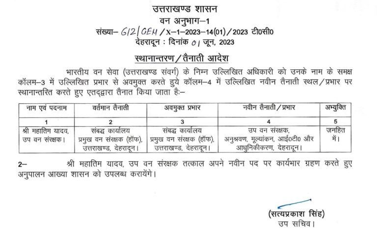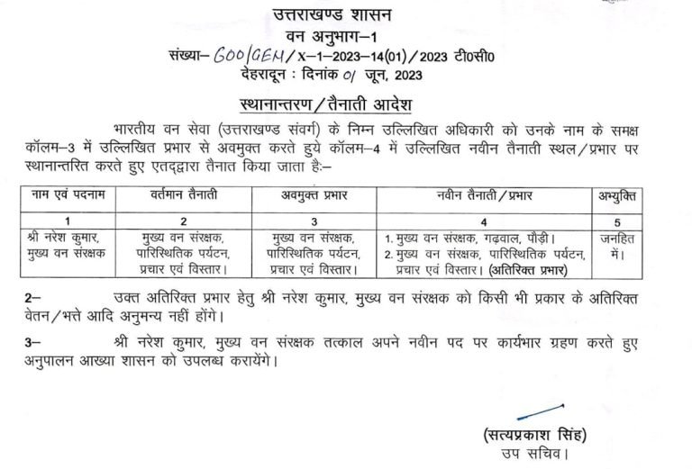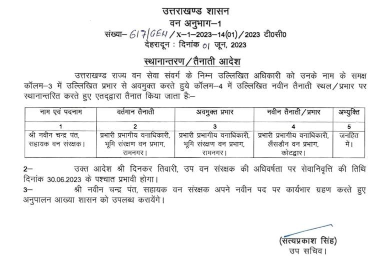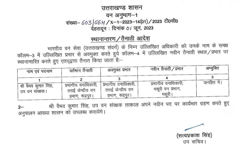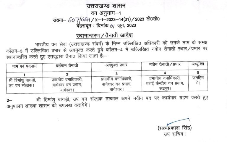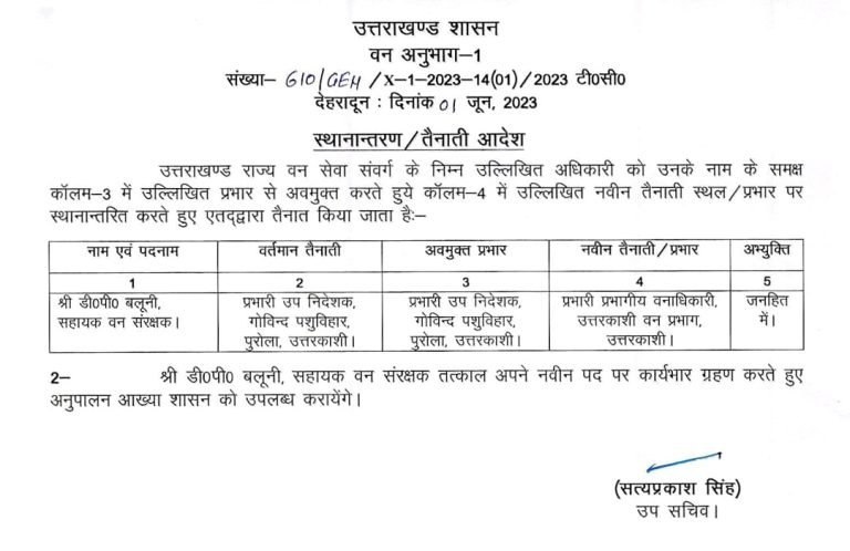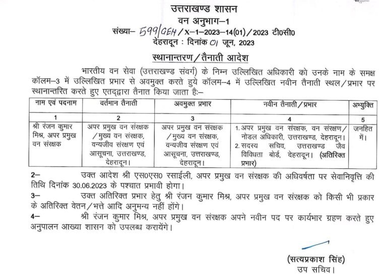 उत्तराखंड ब्रेकिंग : उत्तराखंड वन विभाग में बंपर तबादले, जानिए किस को कहां भेजा, यहां देखें पूरी लिस्ट उत्तराखंड वन विभाग में बंपर तबादले किए गए हैं, इस संबंध में प्रमुख सचिव आरके सुधांशु ने आदेश जारी किया है। देखें सूची :-