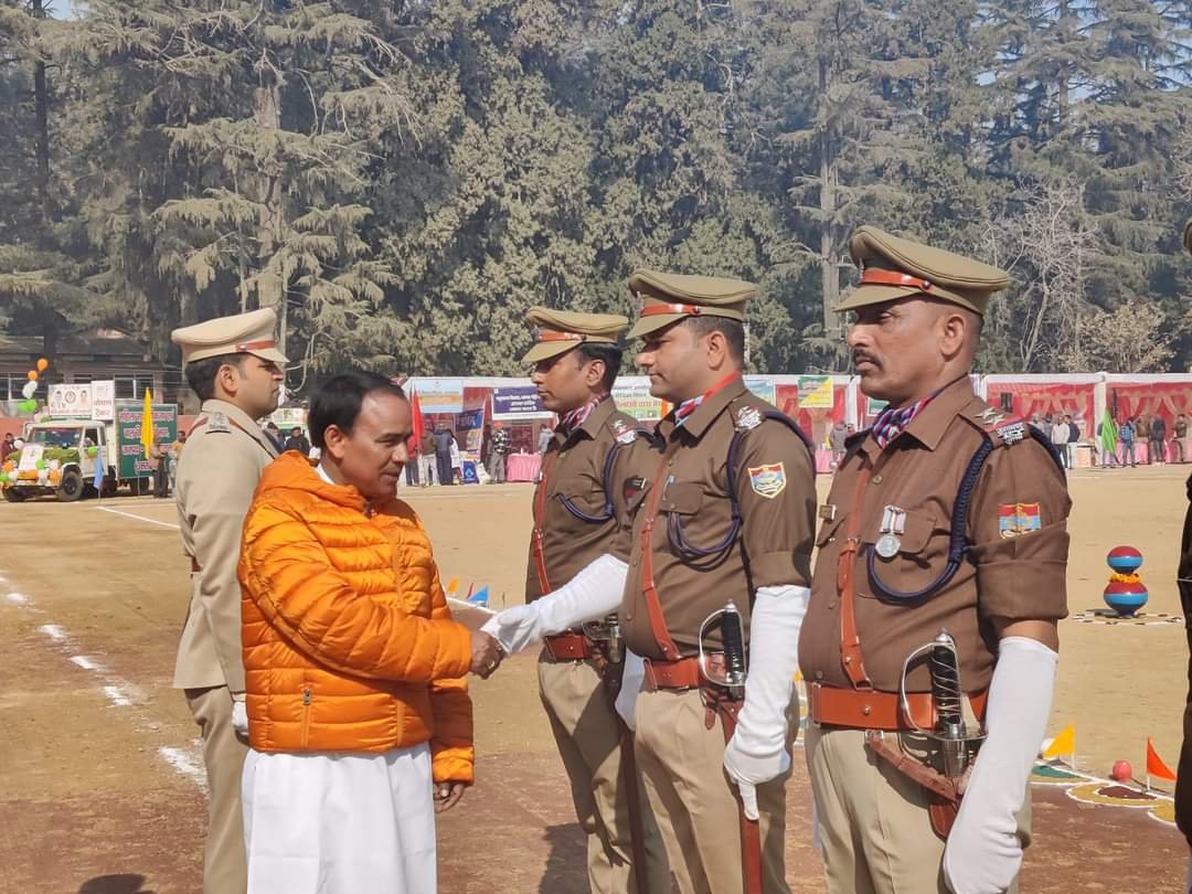 कैबिनेट मंत्री डॉ0 धन सिंह रावत ने जनपद मुख्यालय में ध्वजारोहण किया, उत्कृष्ठ कार्य करने वाले कार्मिकों को सम्मानित करते हुए परेड की सलामी ली
