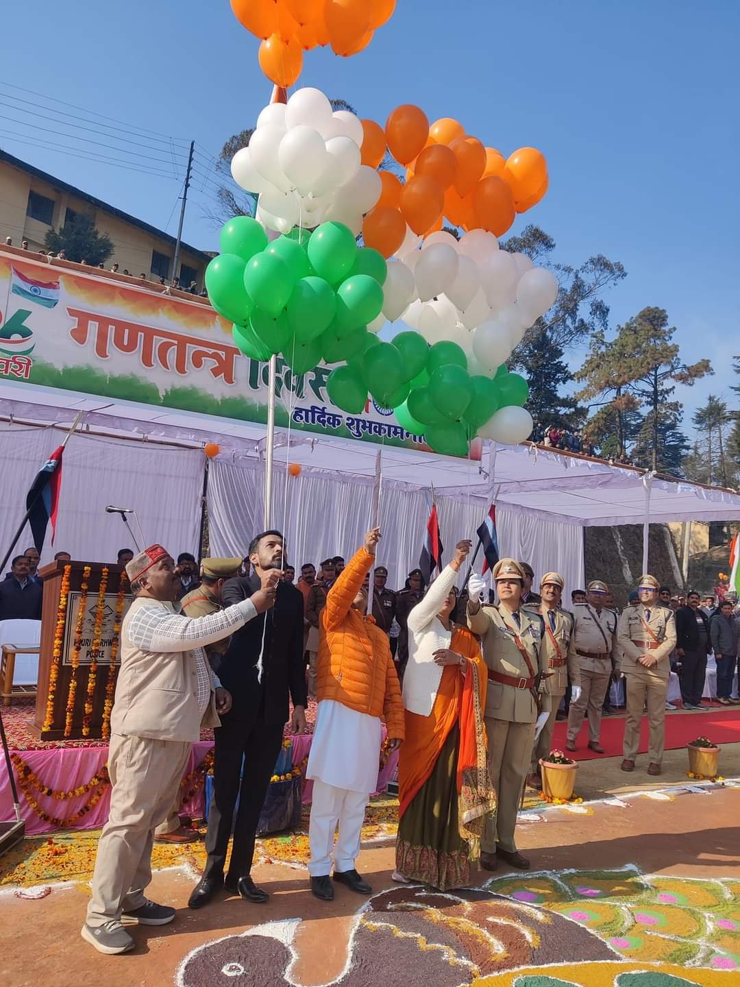 पौड़ी गढ़वाल : कंडोलिया मैदान में 17वां गणतंत्र दिवस के अवसर पर मुख्य अतिथि उच्च शिक्षा मंत्री डॉ0 धन सिंह रावत ने प्रतिभाग किया। उन्होंने ध्वजारोहण कर परेड की सलामी ली तथा सभी को गणतंत्र दिवस की शुभकामनाएं दी। उन्होंने कहा कि यह एक महत्वपूर्ण दिन है जब भारत काफी गर्व के साथ संवैधानिक लोकतांत्रिक गणराज्य के रूम में 75वें वर्ष में प्रवेश कर रहा है। मंत्री ने अपने संबोधन में कहा कि गणतंत्र दिवस 26 तारीख को इसलिए मनाया जाता है क्योंकि इसी तारीख को भारतीय संविधान लागू हुआ था।
