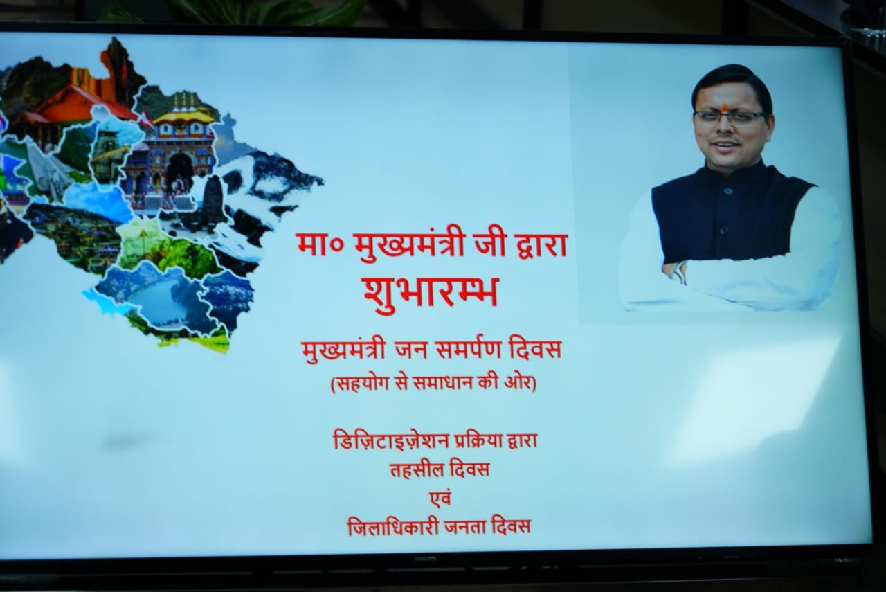 इस अवसर पर मुख्यमंत्री पुष्कर सिंह धामी ने मुख्यमंत्री जन समर्पण दिवस (सहयोग से समाधान की ओर) डिजिटाइजेशन प्रक्रिया द्वारा तहसील दिवस एवं जिलाधिकारी जनता दिवस पोर्टल का शुभारंभ किया। यह पोर्टल सीएम हेल्पलाइन 1905 से कनेक्ट होगा। इससे तहसील दिवस एवं जिलाधिकारी के समक्ष प्रत्येक माह प्राप्त शिकायतों एवं उनमें कितनों का समाधान किया गया इसकी पूरी जानकारी प्राप्त होगी। यह सभी जानकारी डिजिटल माध्यम से प्राप्त होगी। इसके लिए अलग से रजिस्टर मेंटेन करने की आवश्यकता नहीं होगी।