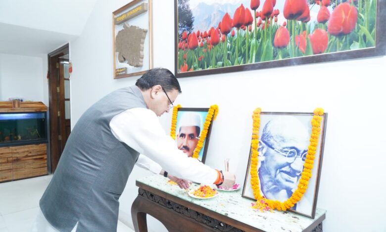 मुख्यमंत्री पुष्कर सिंह धामी ने मुख्यमंत्री आवास में राष्ट्रपिता महात्मा गांधी और पूर्व प्रधानमंत्री लाल बहादुर शास्त्री की जन्म जयंती के अवसर पर उनके चित्र पर श्रद्धा सुमन अर्पित कर श्रद्धांजलि दी।