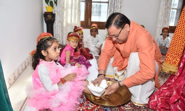 मुख्यमंत्री पुष्कर सिंह धामी ने मंगलवार को शारदीय नवरात्र की नवमी के पावन अवसर पर मुख्यमंत्री आवास में विधि विधान से कन्या पूजन किया। उन्होंने नौ दुर्गा की प्रतीक नौ कन्याओं को भोजन कराया। मुख्यमंत्री ने निर्मल बुद्धि एवं अष्ट सिद्धियों की प्रदाता माँ सिद्धिदात्री से प्रदेश एवं प्रदेशवासियों की सुख समृद्धि की कामना भी की।