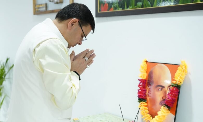देहरादून : मुख्यमंत्री पुष्कर सिंह धामी ने गुरुवार को डॉ. श्यामा प्रसाद मुखर्जी की जयंती पर उनके चित्र पर श्रद्धांजलि अर्पित की।