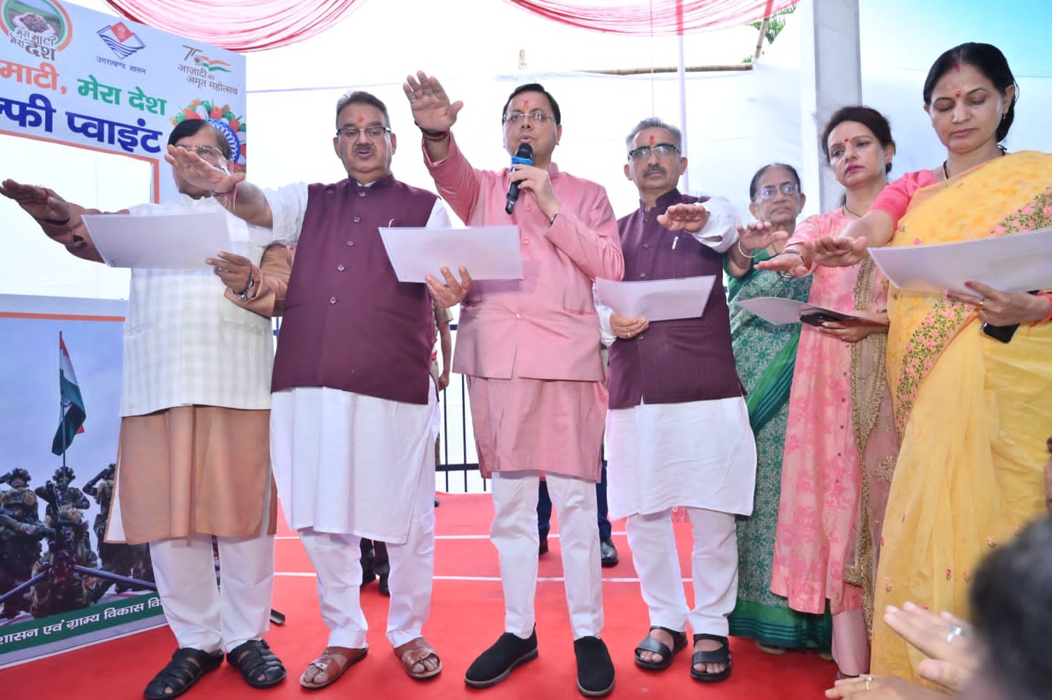 मुख्यमंत्री पुष्कर सिंह धामी ने ’मेरी माटी-मेरा देश’ कार्यक्रम में उपस्थित स्वतन्त्रता संग्राम सेनानियों एवं देश के लिए अपना सर्वोच्च बलिदान देने वाले वीर सैनिकों के परिजनों का स्वागत करते हुए कहा कि यह उनका सौभाग्य है कि आज मुख्य सेवक के रूप में उन्हें सभी को सम्मानित करने का अवसर प्राप्त हुआ। उन्होंने कहा कि प्रधानमंत्री नरेन्द्र मोदी के दूरदर्शी नेतृत्व में हमें उन वीरों की वंदना करने का अवसर प्राप्त हुआ है, जिन्होंने देश की माटी की खातिर अपने प्राणों की आहुति दी। प्रधानमंत्री ने आजादी के अमृत काल में देशवासियों को पंच प्रण दिए हैं।
