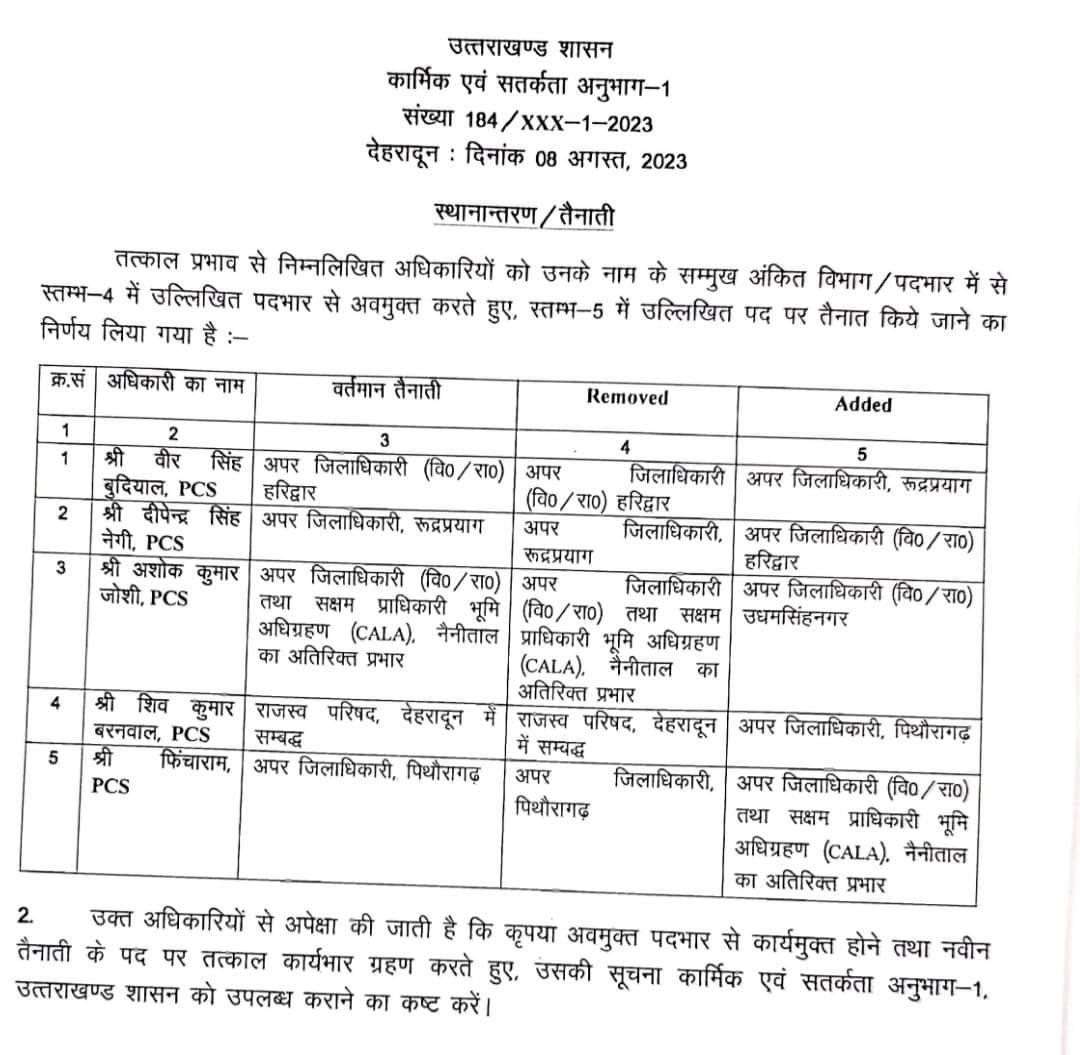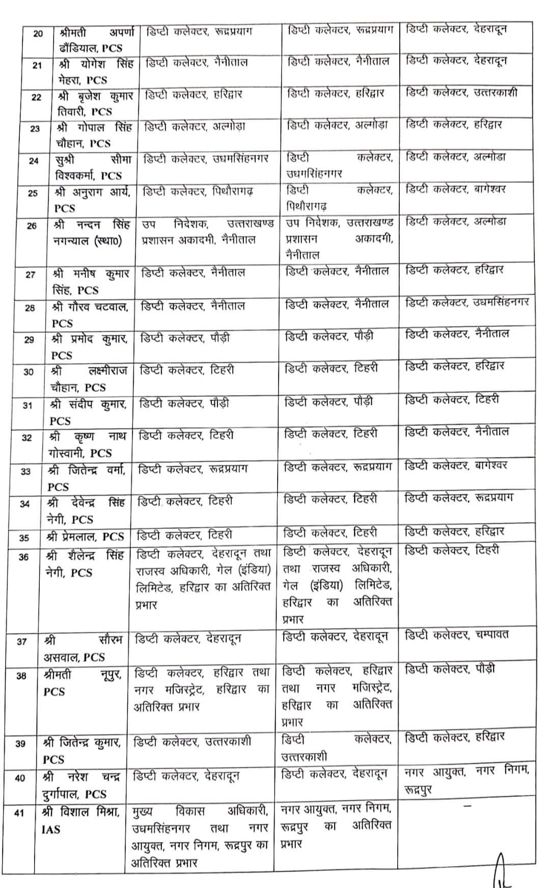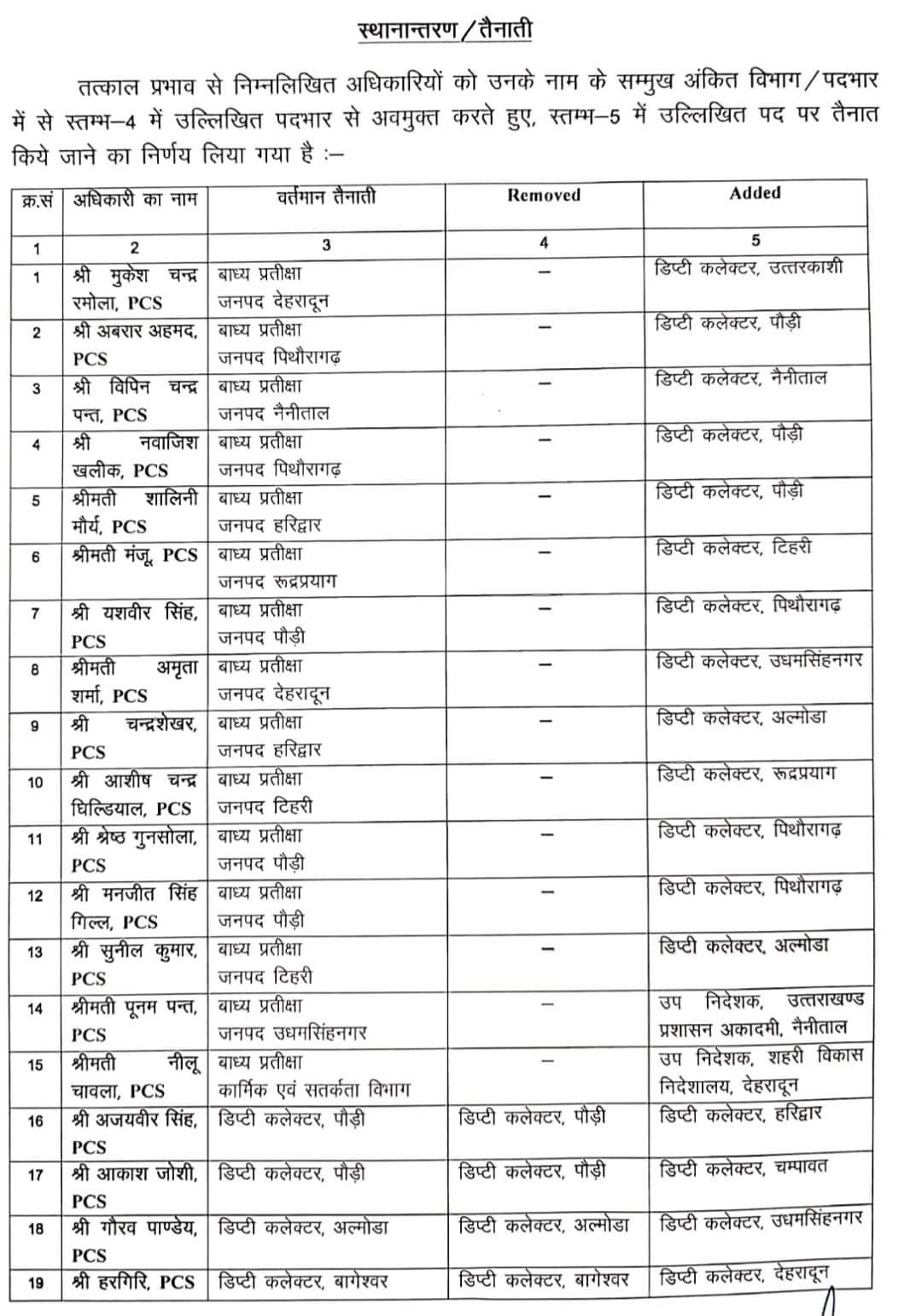 देहरादून : मुख्यमंत्री पुष्कर सिंह धामी ने एक बार फिर से उत्तराखंड में एक IAS सहित पीसीएस अधिकारियों के बंपर तबादाले कर दिए हैं। इस संबंध में शासन ने आदेश जारी कर दिया है।