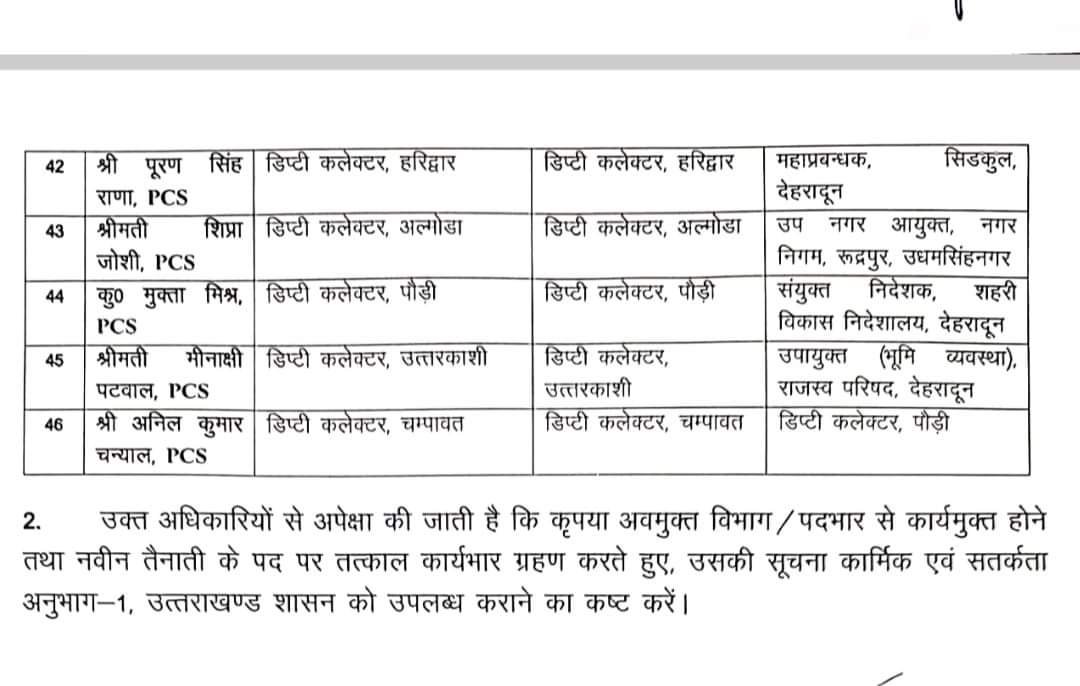 शासन ने देर रात किए अफसरों के बम्पर तबादले, नवनीत पाण्डे चंपावत के नये डीएम, कई पीसीएस के तबादले व तैनाती