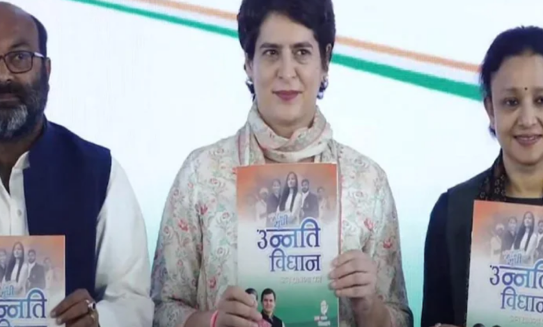 उत्तर प्रदेश विधानसभा चुनाव के लिए कांग्रेस आज अपना घोषणा पत्र जारी करेगी पार्टी की महासचिव प्रियंका गांधी वाड्रा कांग्रेस के प्रदेश मुख्यालय पर उन्नति विधान यह घोषणापत्र जारी करेंगी इस घोषणा पत्र में पार्टी ने प्रदेश की तरक्की का खाका खींचा है घोषणा पत्र के माध्यम से कांग्रेस छत्तीसगढ़ में अपनाए गए प्रयोगों को उत्तर प्रदेश में दोहराने की कोशिश भी करेगी इससे पहले कांग्रेस महिलाओं और युवाओं के लिए अलग अलग घोषणा पत्र जारी कर चुकी है।